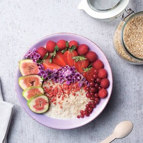 - Сервировать кашу, украсив фруктами и съедобными цветами.
