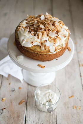 6. Для начинки смешайте в кухонной машине Electrolux Assistent маскарпоне с сахаром, добавьте кокосовое молоко и взбейте до однородной массы венчиком для взбивания.