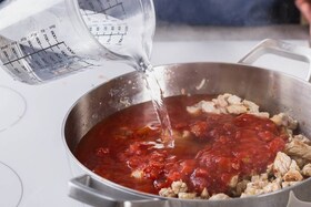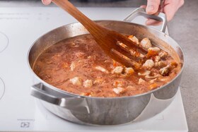 Добавляем мясо индейки и варим на медленном огне в течение 5 минут, периодически помешивая.