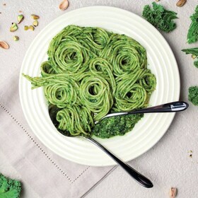 Паста с соусом песто из капусты кале