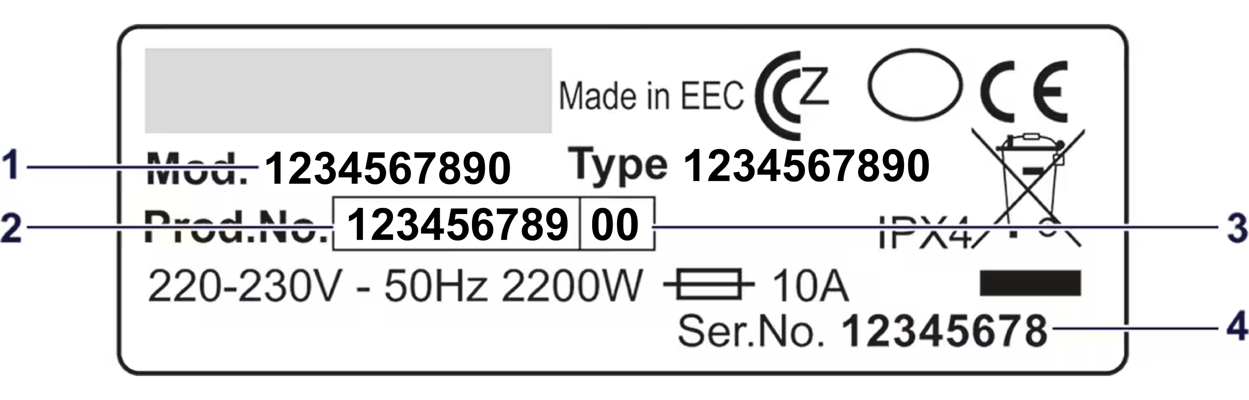 Код модели и номер продукта (PNC) находятся на наклейке с серийным номером устройства.