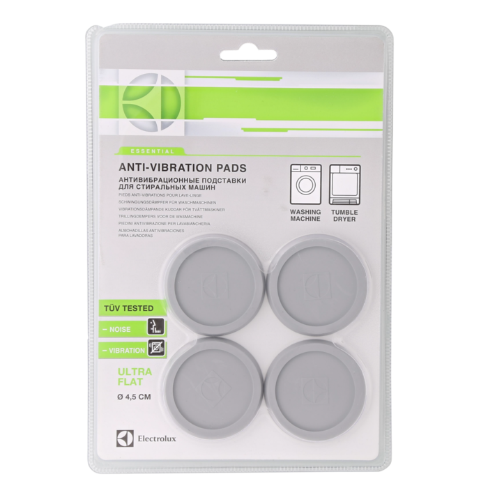 Непримітні противібраційні накладки легко встановлюються на пральній машині, захищають підлогу від подряпин і зменшують рівень шуму.