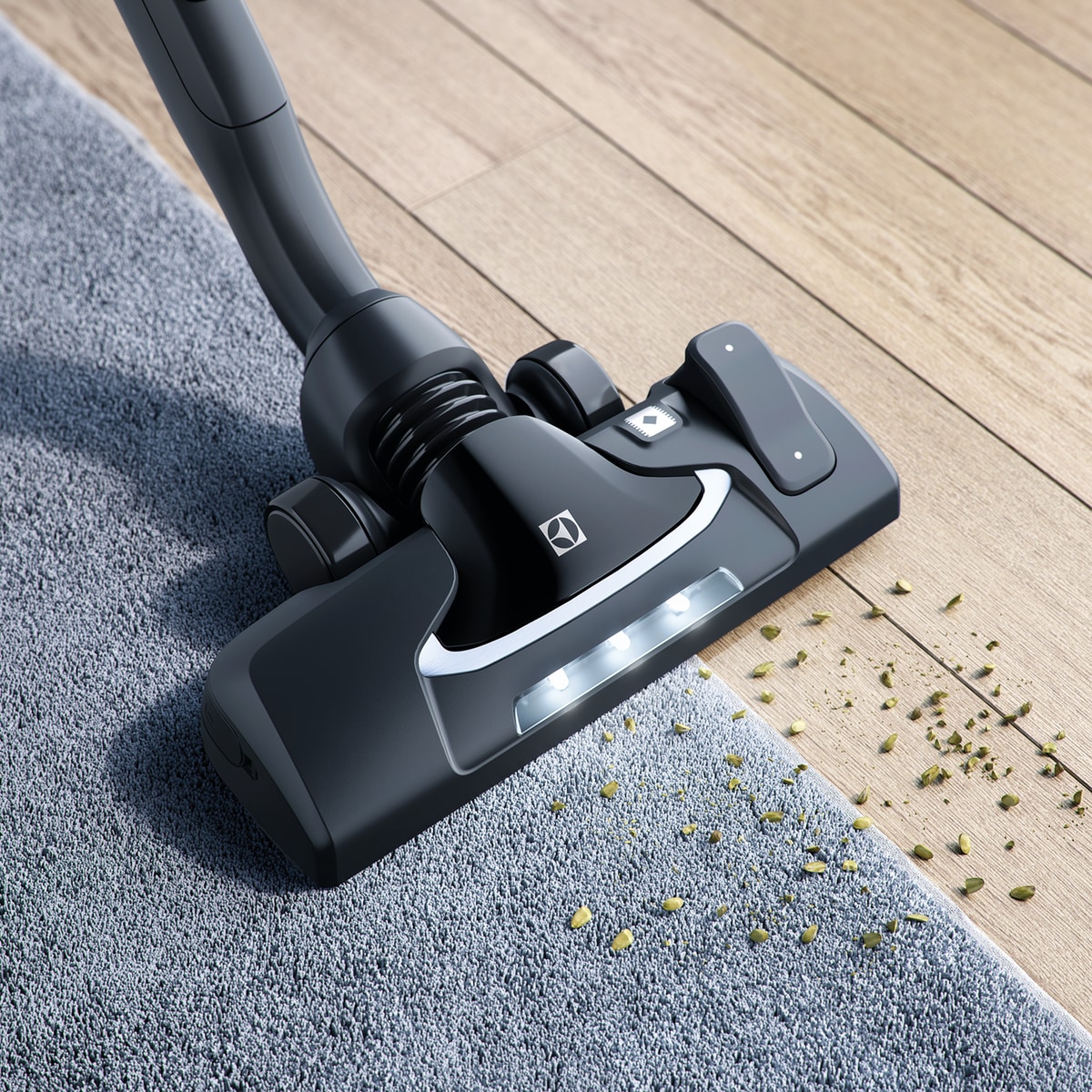 Насадка для прибирання зі світлодіодним підсвічуванням, оптимізована для всіх типів підлог і килимів.