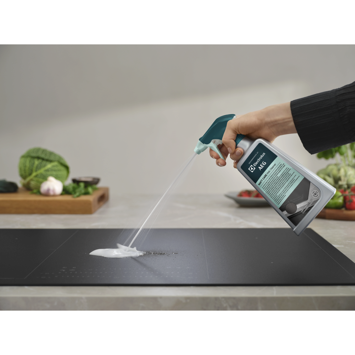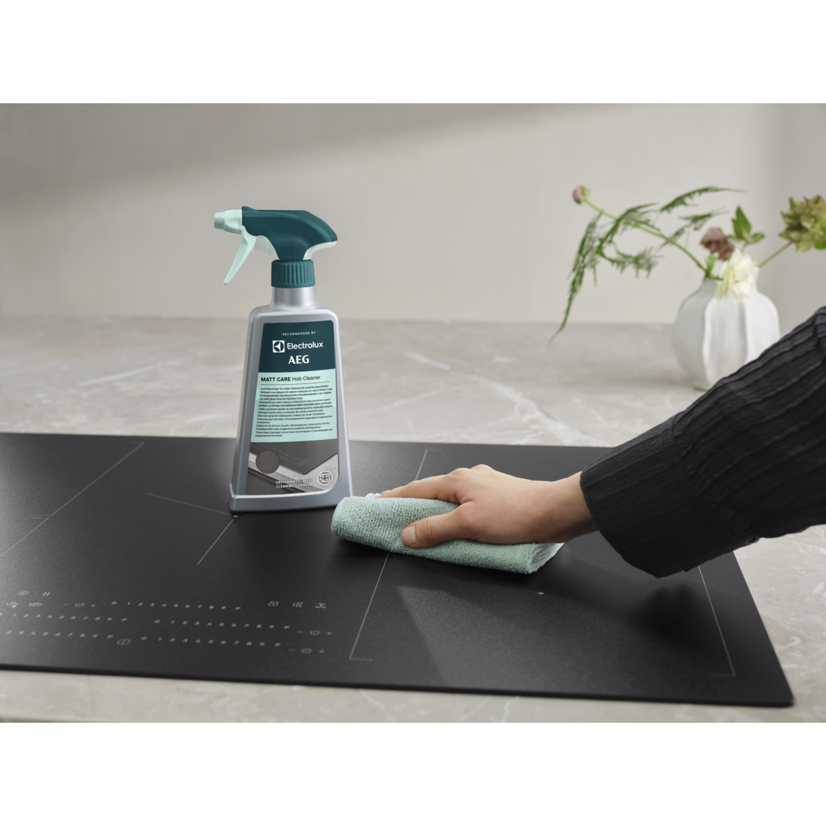 Matt Care Hob Cleaner — це спеціальний засіб для глибокого очищення матових склокерамічних індукційних поверхонь, зокрема моделей SaphirMatt® і SaphirMatt® SE*. Видаляйте жир і пригорілі залишки їжі для бездоганної чистоти.