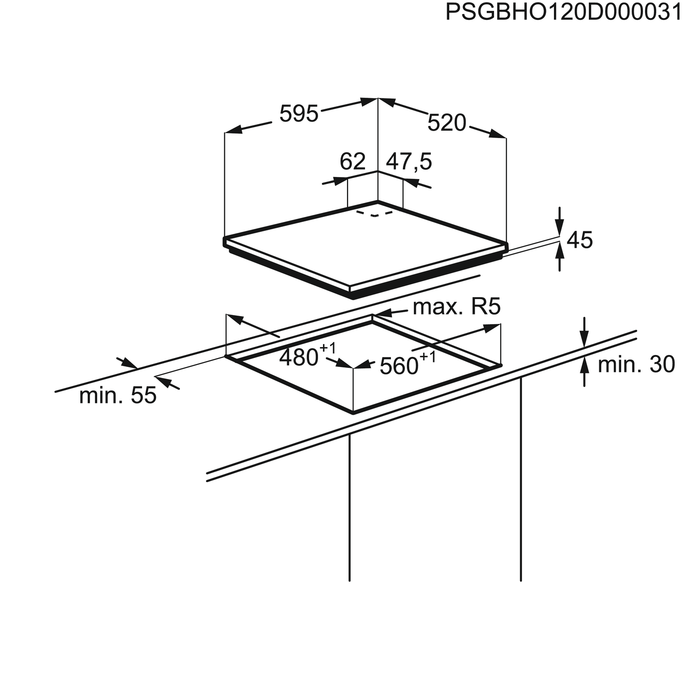 Газова варильна поверхня GPE363NK Лінійка GOG 60 см
