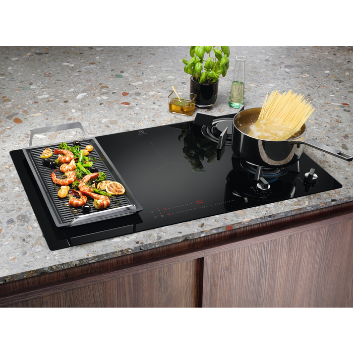 Поєднання газових пальників та електричної зони нагрівання дозволяє вибирати тип нагрівання відповідно до страви, яку ви збираєтесь приготувати.