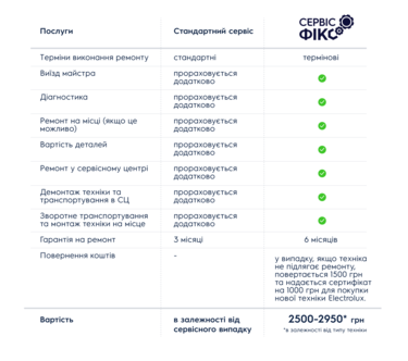 Electrolux зі своїми клієнтами – назавжди. Виникла ситуація, а техніка не на гарантії? Вам більше не доведеться вирішувати проблему самотужки: з послугою «Сервіс Фікс» Electrolux подбає і про техніку, і про ваш час.