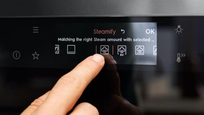 Якщо вам потрібна допомога в налаштуваннях при виборі режиму пари, скористайтеся функцією Steamify®. Задайте температуру, за якої зазвичай готуєте страву традиційним способом, і духова шафа автоматично відрегулює налаштування, щоб додати необхідну кількість пари та довести смак до досконалості. Steamify допоможе готувати смачніші та корисніші страви.