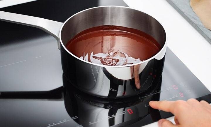 1Розтопіть шоколадВикористовуйте індукційну варильну поверхню, аби поступово розтопити півчашки темного шоколаду, доки він не стане однорідним.