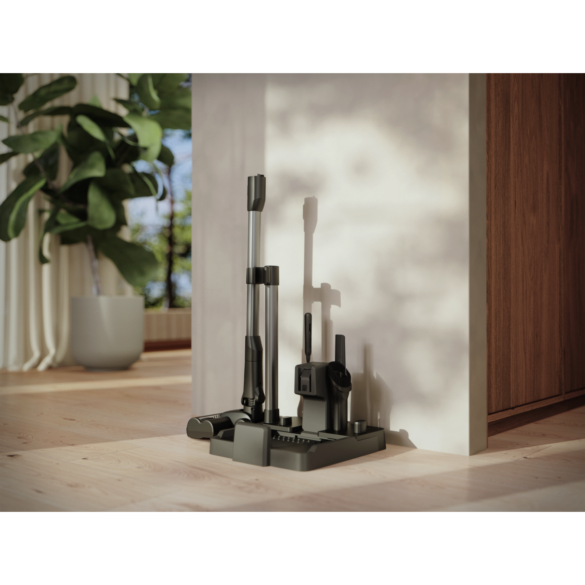 Додатковий комплект аксесуарів дає змогу швидко й легко перемикатися між вологим і сухим прибиранням. А на підставку для заряджання зручно кріпити всі аксесуари.