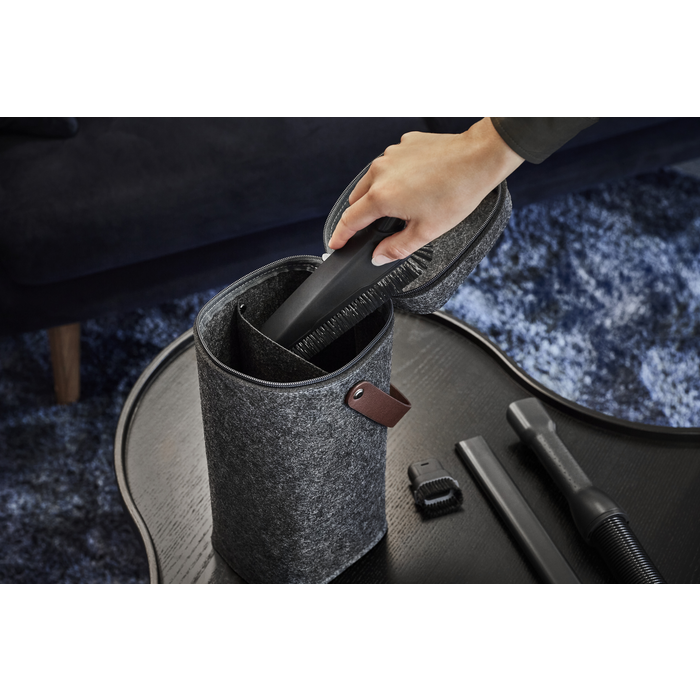 Окрема сумка для зберігання усіх аксесуарів для пилососа, s-мішків, фільтрів та інших необхідних речей. Маючи достатню місткість, сумка дозволяє зберігати більшість аксесуарів, які можна розмістити над підлогою.